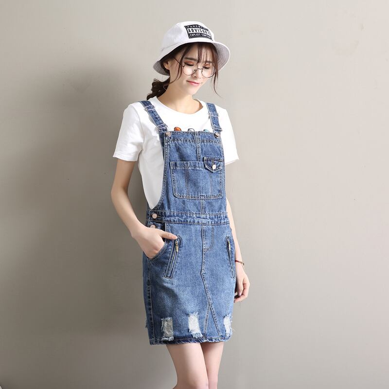 夏dress女性2017デニムdress女性カジュアルファッション綿マルチポケットストラップサンドレス大きいサイズドレス