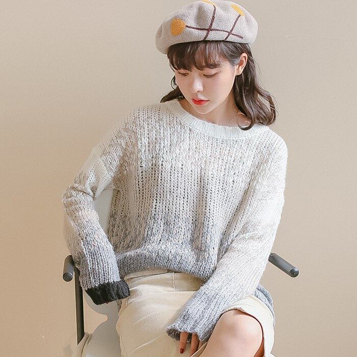 韓国のシックな青のグラデーションセーター 2018 新しい秋の女性ニットジャンパーコート O ネック長袖ルーズプルオーバーニット