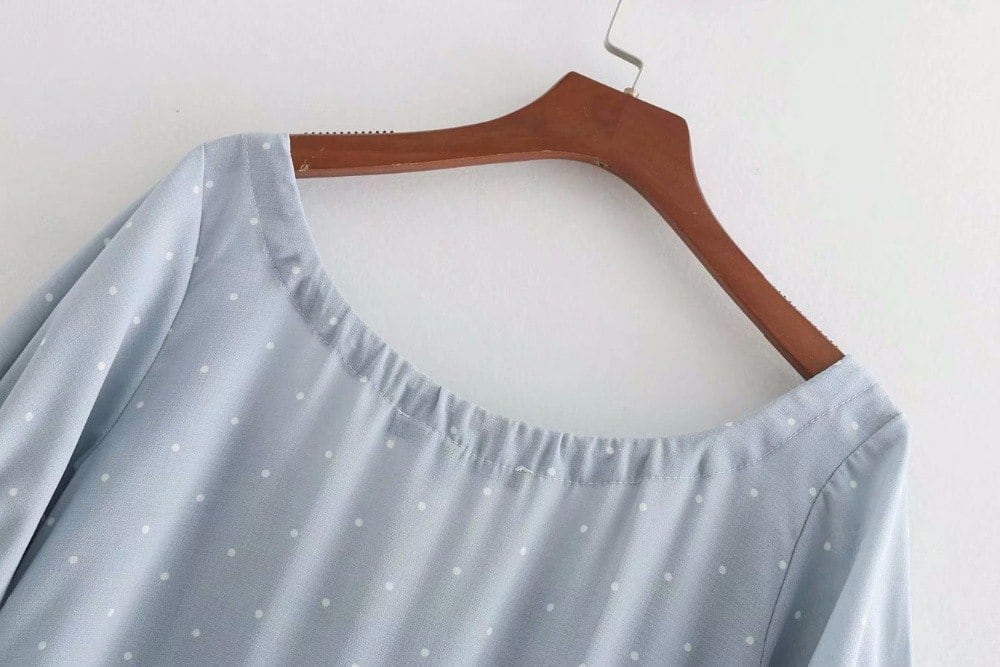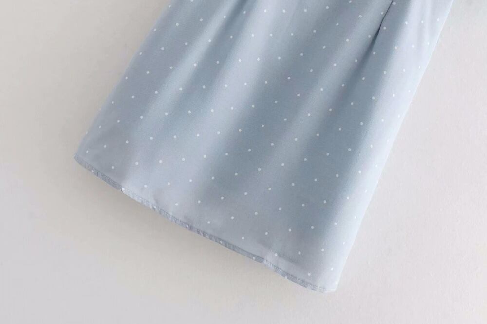 2018ポルカドット夏女性スクエアカットネックラインネクタイでフロントドレスフリルスリーブミニトリミングドレス