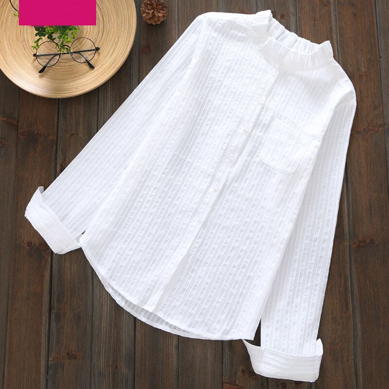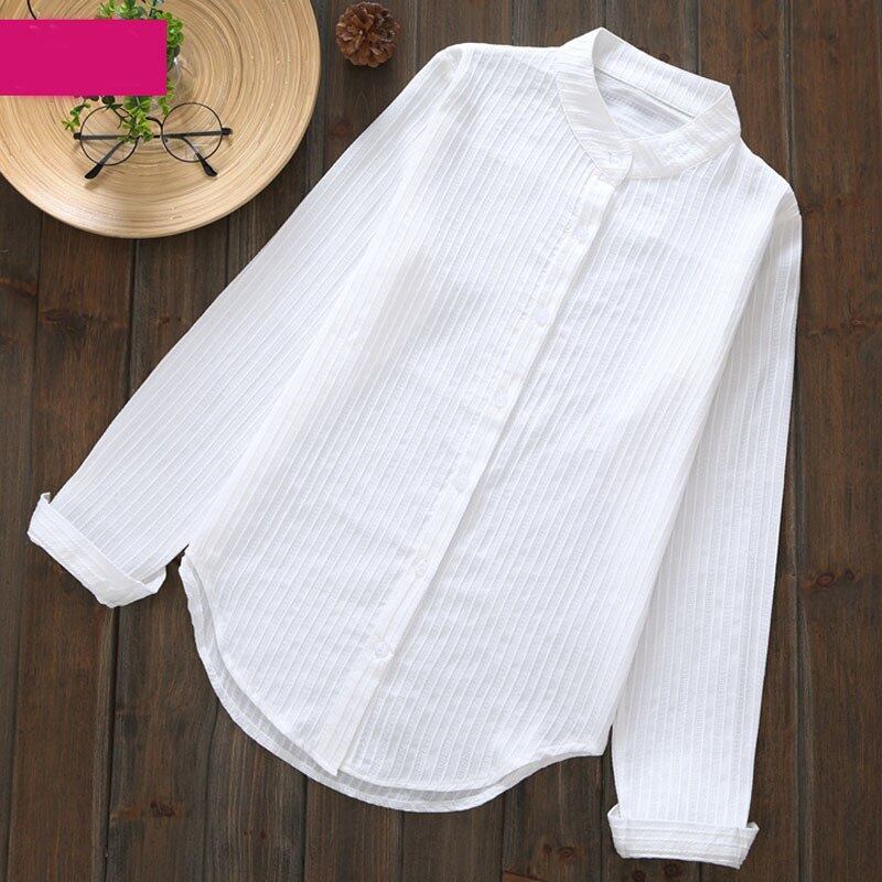春と秋の女性の長袖シャツ 2018 新韓国スタイル女性の基本的なシャツティーンエイジャーの少女綿 100% スリムストライプ