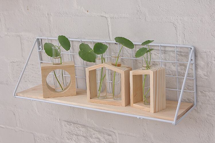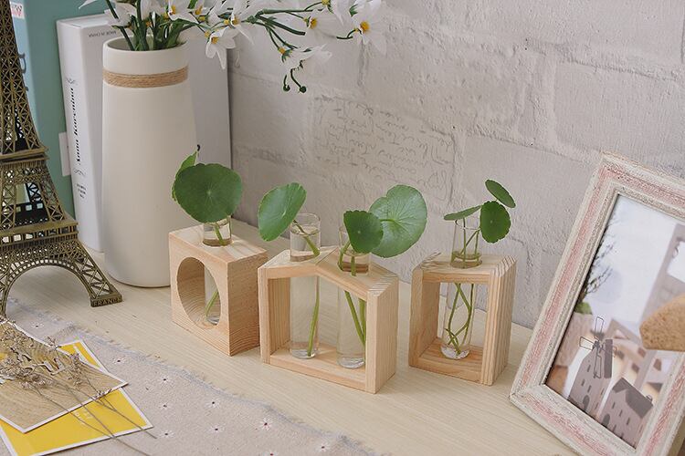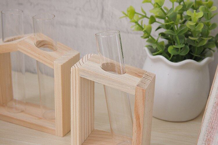 1 ピース北欧ヴィンテージクリエイティブ水耕植物透明花瓶木製フレーム花瓶ガラス卓上植物盆栽インテリア JL 223
