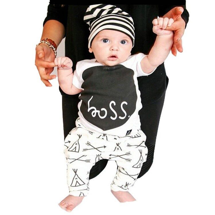 新生児2016幼児赤ちゃん男の子服セット夏2ピース衣装プリントtシャツとパンツブラック&ホワイトラブリー男の子服セット