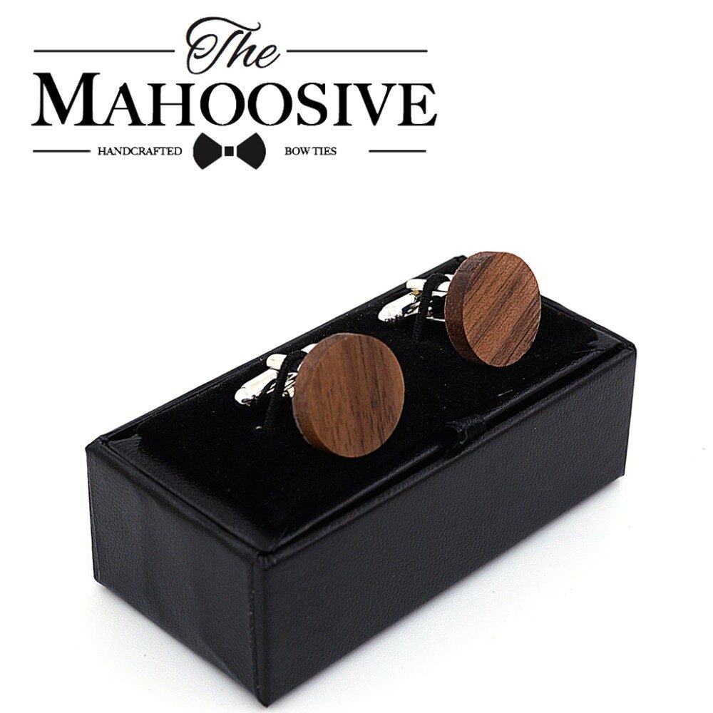 MAHOOSIVE 木製カフスフランス結婚式新郎ラウンド黒クルミのためのカフスメンズシャツアクセサリーカフスメンズジュエリーカフス