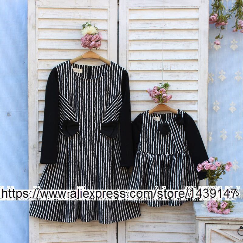 子供服母と娘のドレス黒と白のストライプ、2-10歳の子供女の子服、女性大きいサイズ4xl