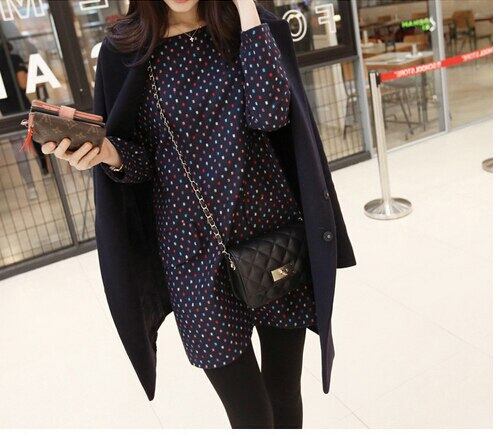 2015熱い秋ドットドレスフルスリーブコットンtシャツドレス緩いaラインフィットスリムelbise oネックファッション衣服EE64