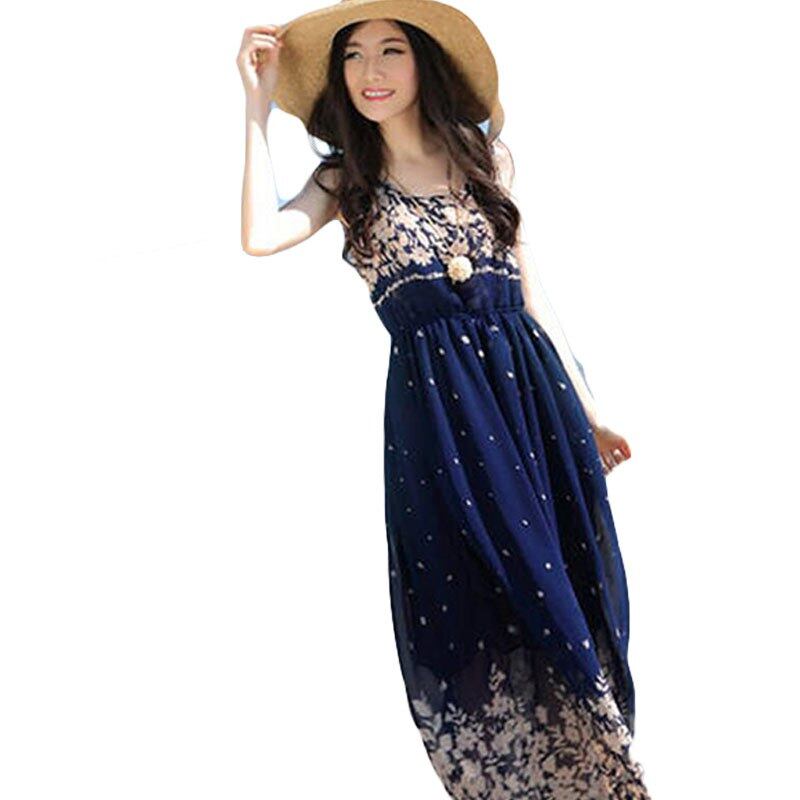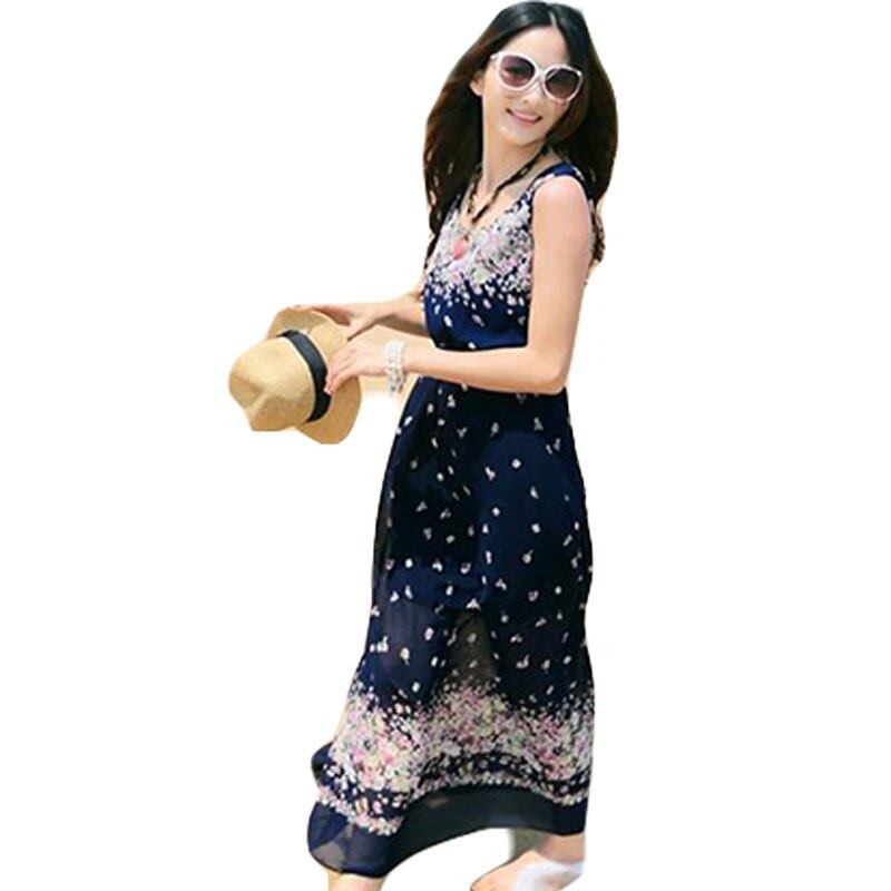 ホットスタイルボヘミアンロングビーチドレスプリントカラフルなノースリーブシフォンvestidosカジュアルゆったりとした衣服ベストelbiseドレスfc23