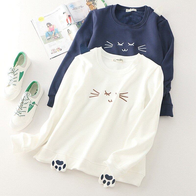 ファッションプルオーバー長袖フード付きかわいい猫耳パーカーカジュアルトップス女性トレーナー