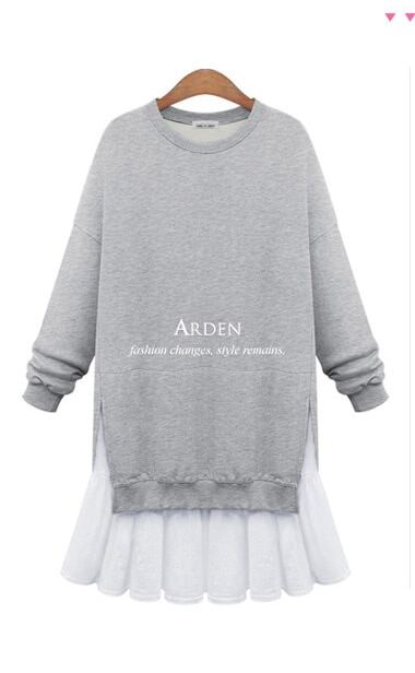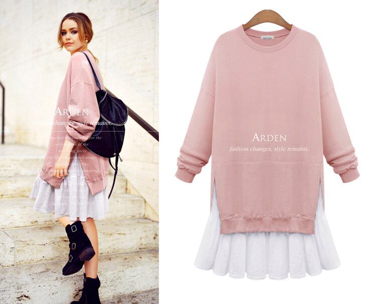 新 2018 秋冬 O ネック長袖フェイク 2 トレーナーステッチカジュアルな服装の女性プラスサイズ XL-5XL