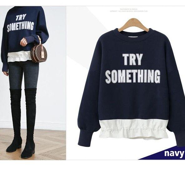 新 2018 原宿パーカー女性長袖レタープリントプルオーバーパッチワークトラックスーツスウェットのファムプラスサイズ 5XL 特大