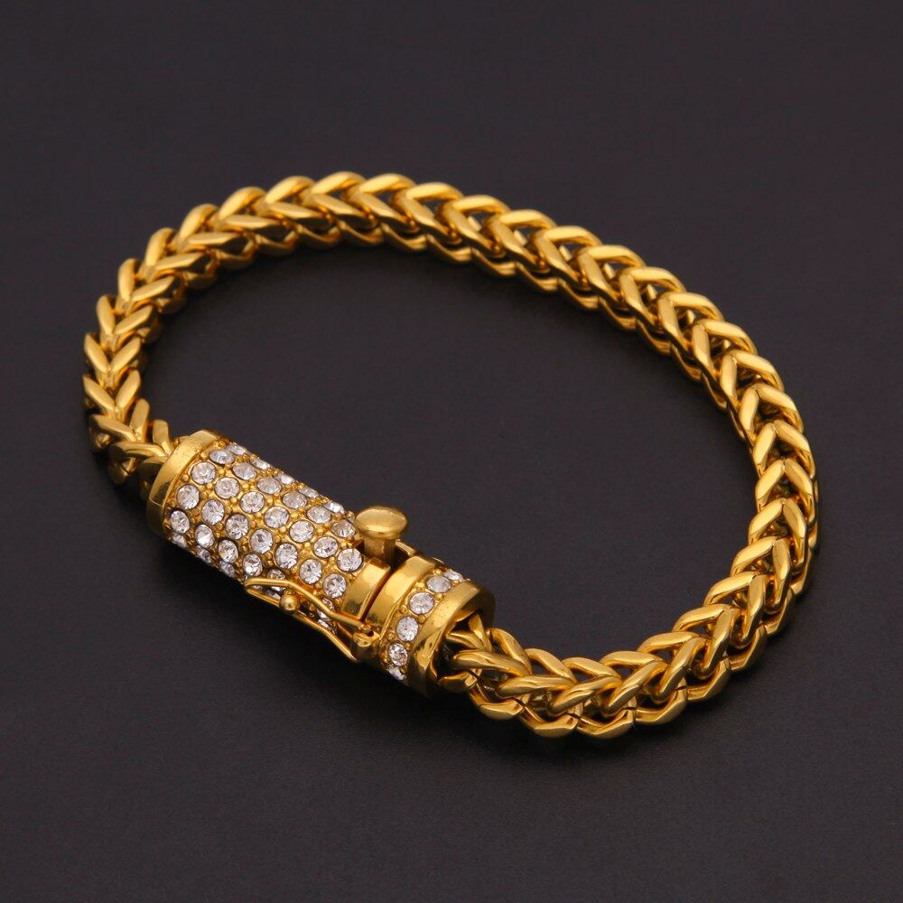 Uwin フランコリンクチェーンブレスレットフルアイスアウトラインストーンボックスクラスプ最高品質ステンレス鋼ブレスレットの男性のヒップホップジュエリー