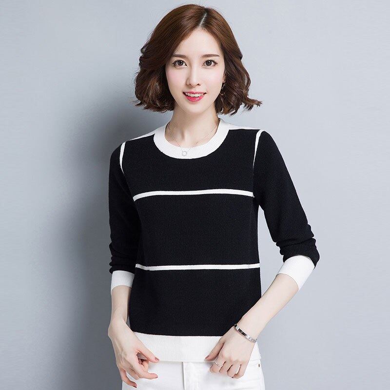 女性セータープルオーバー春基本ニット綿ストライプクルーネック不可欠ジャンパー長袖セーター秋冬