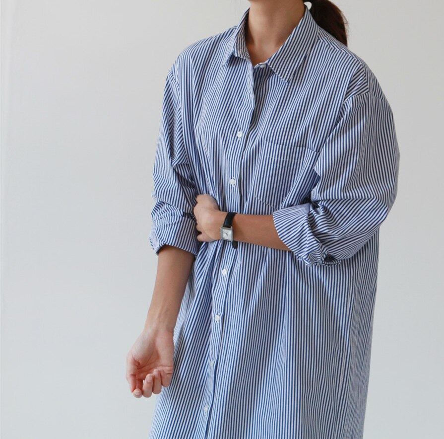 トップファッション2018レディースol長袖シャツストライプブラウス緩いトップスblusas femininas韓国スタイルプラス大きなサイズs-3xl