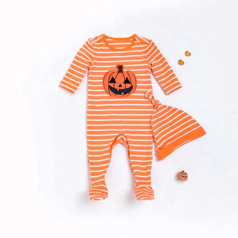 幼児女の赤ちゃんの男の子服長袖ジャンプスーツベビーロンパース + 帽子 2 ピース子供服セットハロウィンパーティーサッカーブーツロンパース