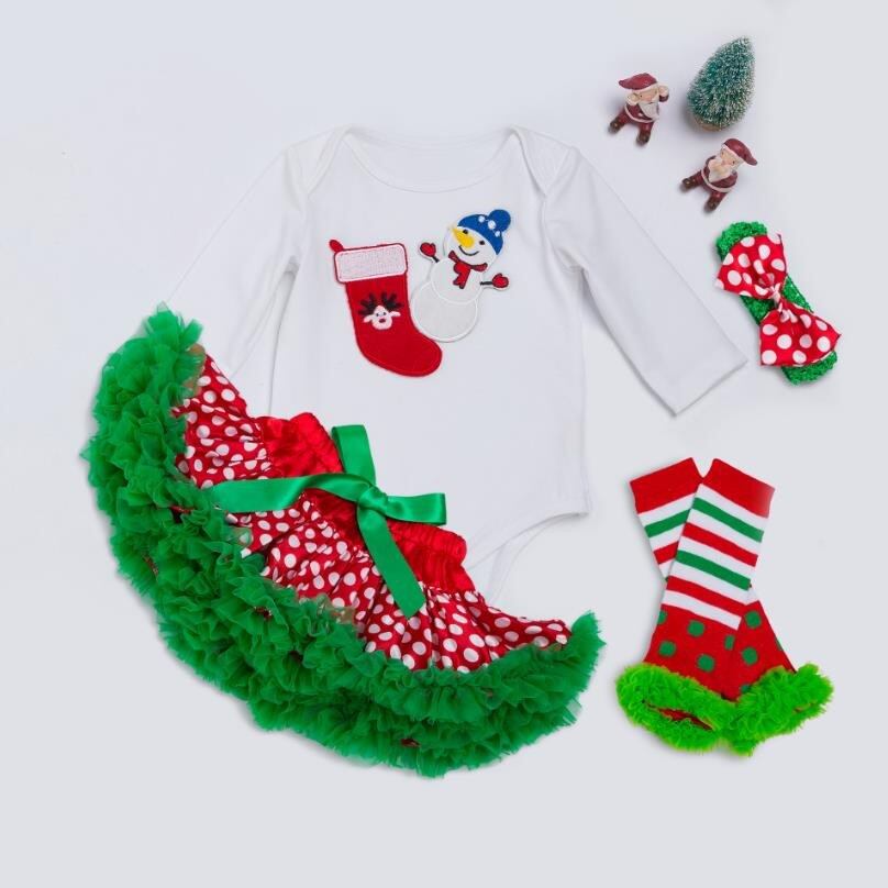 新生児クリスマスベビー服幼児ジャンプスーツ + チュチュドレス + ヘッドバンド + レッグウォーマー 4 ピース女の赤ちゃん衣類クリスマス幼児ロンパーススーツ