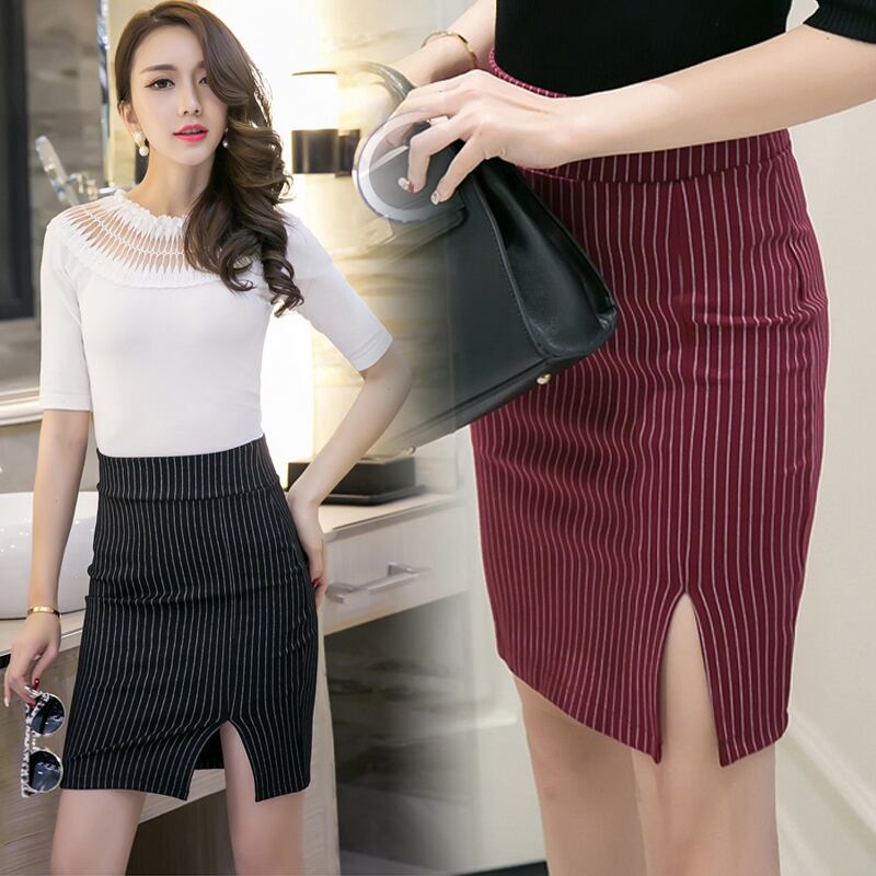 Tingyili女性ハイウエストストライプペンシルスカート春夏プラスサイズセクシーなボディコンスカート高品質オフィスレディスリットスカート