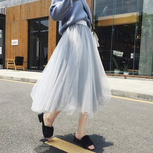 TingYiLi グレーピンクチュールスカート秋スカートロングハイウエスト韓国スカートレディース