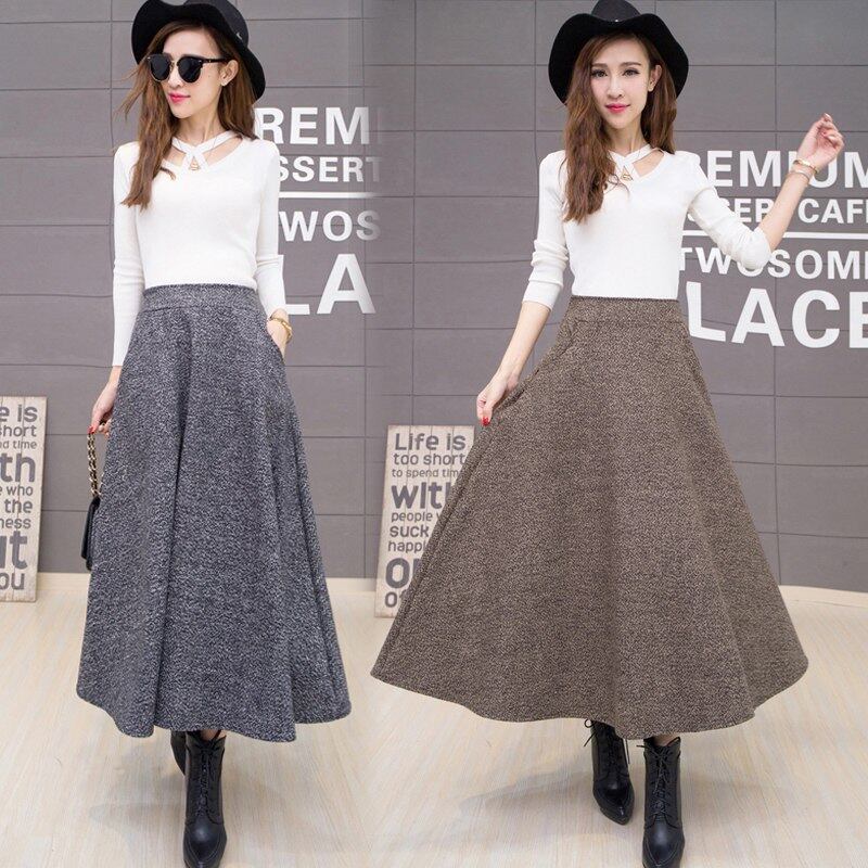 Tingyili冬ロングスカートレディースヴィンテージハイウエストスカート黒カーキマキシスカート