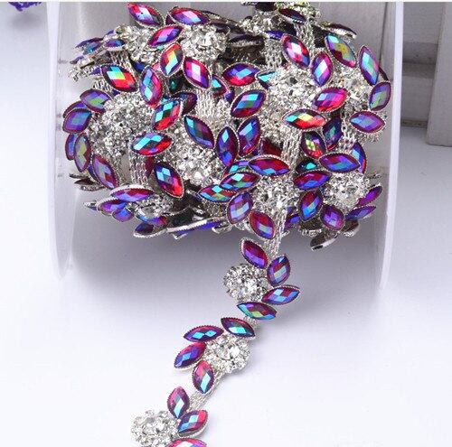 高品質 1yds 2 センチ幅 AB ガラスクリスタルクリアガラスラインストーンブライダルトリムファッションシルバートーン