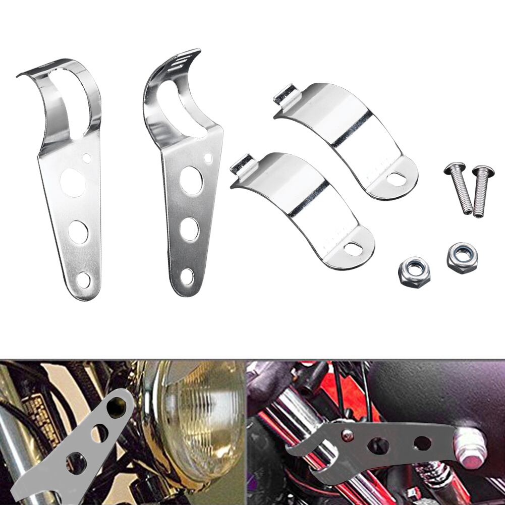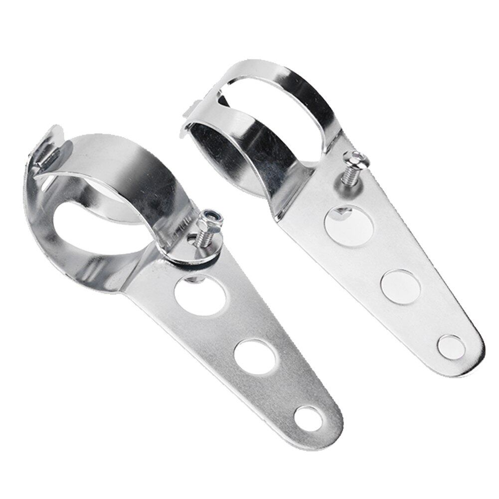 シルバー28〜43ミリメートル調整可能な穴ヘッドライトマウントブラケットフォーク耳用オートバイチョッパーカフェレーサーアルミ