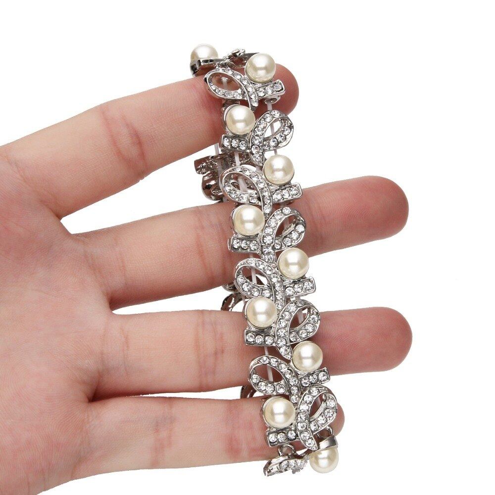 Bellaファッションアイボリーシルバーメッキラウンドラインストーンストレッチオーストリアクリスタルブライダルブレスレット用結婚式のウエディングジュエリー
