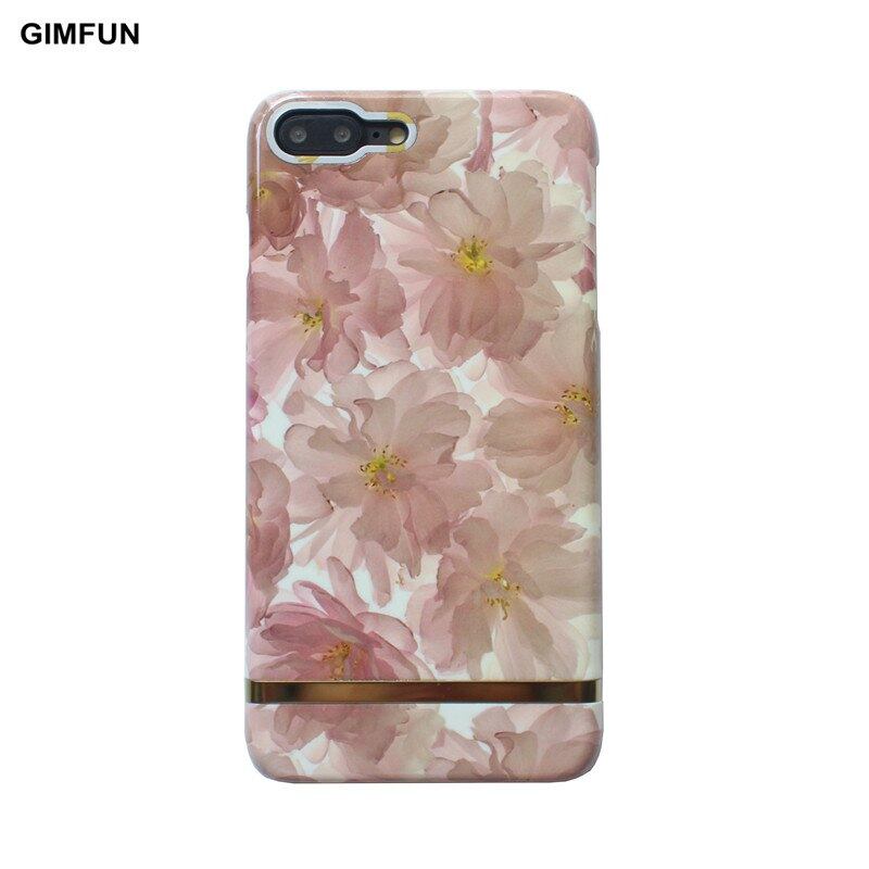 Gimfun高級ピンクメッキ芸術花大理石電話ケース用IPhone7/7プラスハードpcケース光沢のあるレトロカバーiphone用6 6 s 6プラス