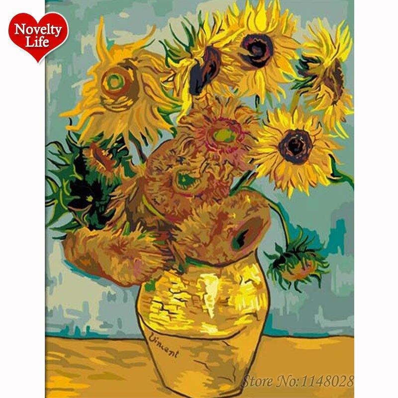 フレームdiy絵画花ひまわり画像上壁アクリル花瓶抽象絵画ユニークなギフト家の装飾f20