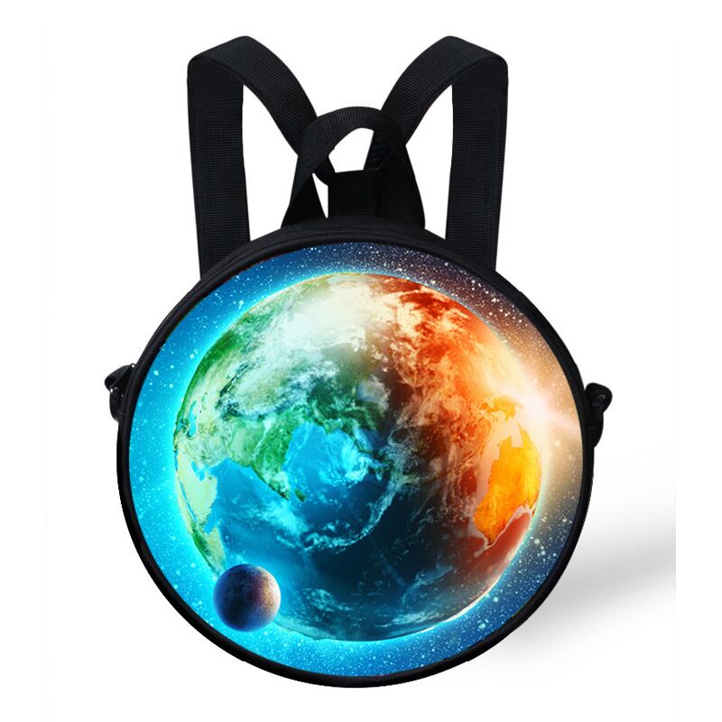 9インチ子供ラウンドバックパックバッグ子供スペースプリントバックパック用男の子星空柄リュック幼稚園バッグ