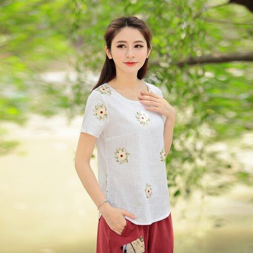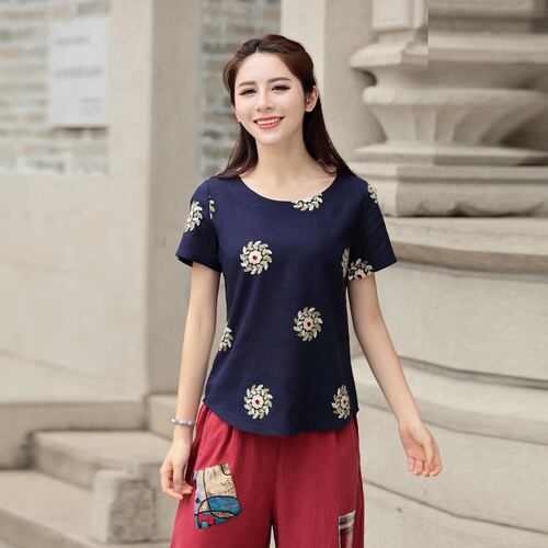 2018夏繁体字中国語半袖緩い刺繍女性はプラスサイズ4xlヴィンテージtシャツ