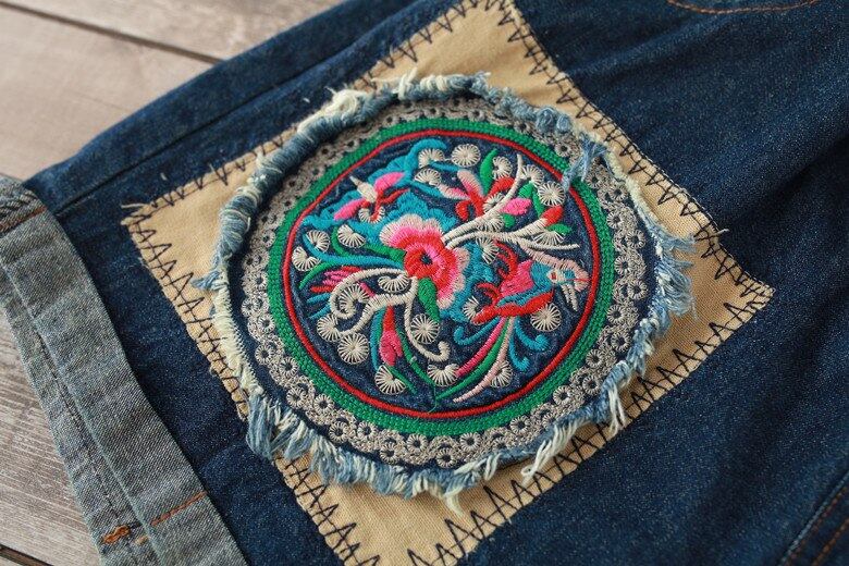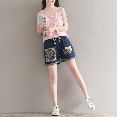 弾性ウエストショートジーンズ2018夏の芸術的なカジュアル森ガール女性ショーツデニム古いエスニックスタイル短い女性