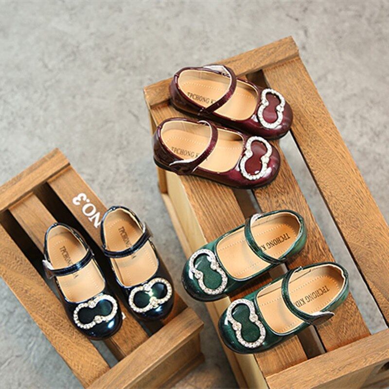 春/秋子供靴女の子のパテントレザースニーカー靴子供ファッションボタン柔らかい底ノンスリップ王女靴