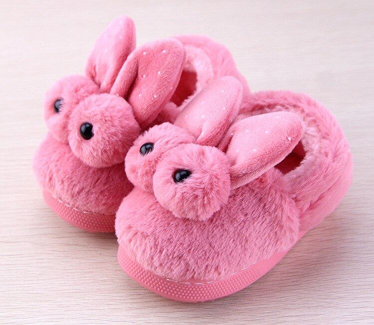 子供の女の子の綿スリッパ冬ボーイズホームスリッパ靴暖かいぬいぐるみベルベットキッズベビー屋内靴かわいいウサギの耳スリッパ