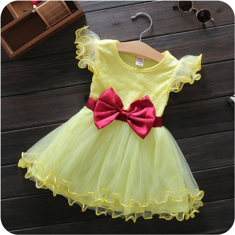 子供女の子ドレス服ベビープリンセスドレスで弓2018夏無地ウエスト大きな弓レース服ファッションドレス