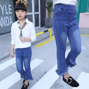 春/秋子供パンツ女の子のためのデニムタッセルズボン子供赤ちゃんカウボーイベルボトムフレアパンツファッションズボン