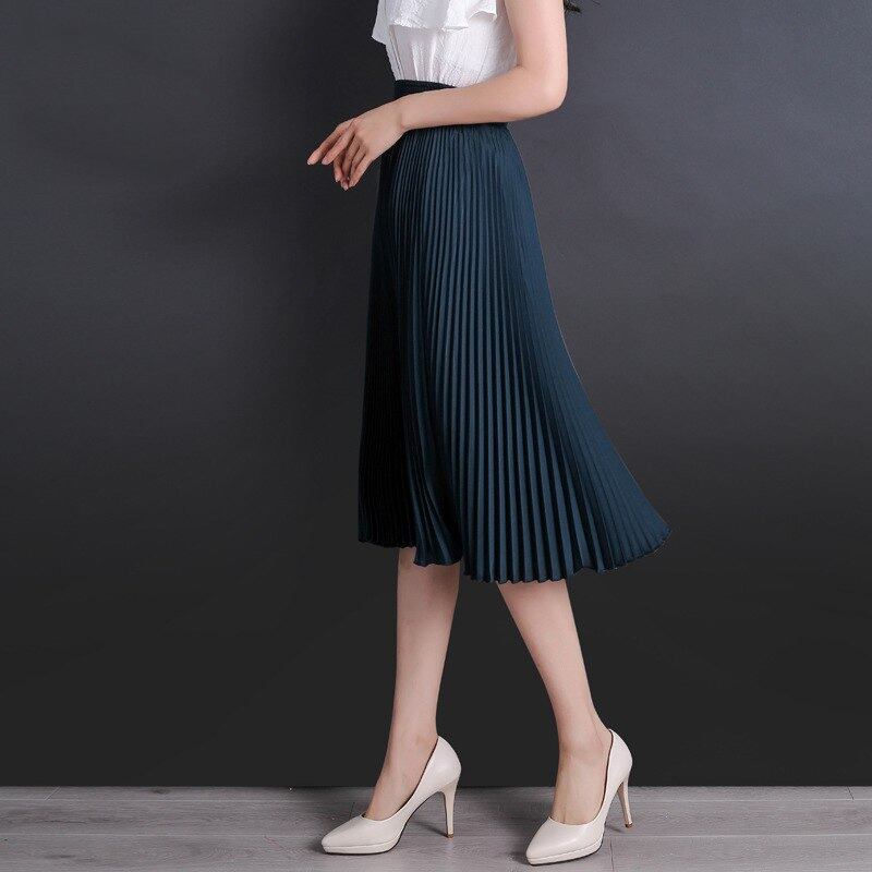 2018新しいファッション夏女性スカートグリーンサファイアmidプリーツスカートsaiasミディ段faldasヴィンテージ女性半ばスカート