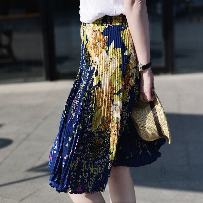 プリーツミディスカート女性段faldas saiasペチコート2017新しいファッション夏エレガントレディース印刷膝丈スカート