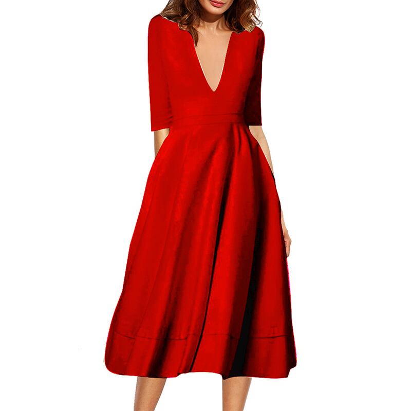 女性のファッション春ドレスハイウエストハーフスリーブ膝丈ボヘミアンマキシドレスレディースエレガントなaラインパーティードレス女性