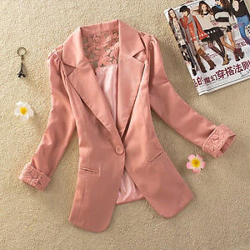新しいフォーマル女性コートシングルボタンオフィスコートsilm秋カジュアルジャケット長袖ショールカラーバックレースコートNQ817591