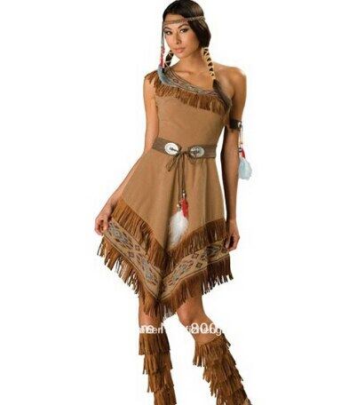 送料無料レディースポカホンタスネイティブアメリカンインディアンのワイルドウェスト仮装パーティー衣装インド衣装
