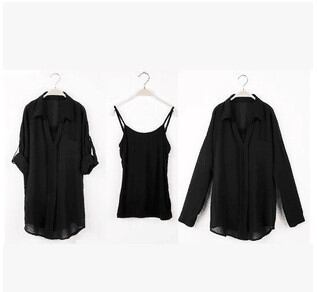 2018女性ブラウス+とキャミソールシャツロングスリーブ熱帯カジュアルシフォンcamisas blusas femininasビッグ/プラス/大サイズ固体シャツ