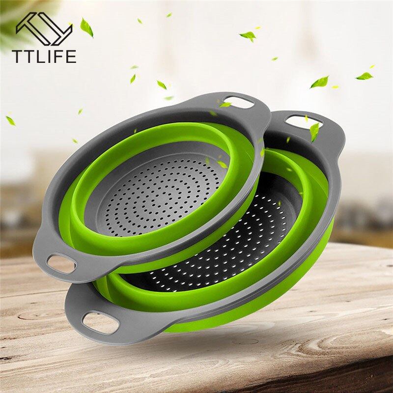 Ttlife 2ピースフルーツ野菜ストレーナー折りたたみシリコン水切りバスケットキッチンツールカトラリー棚シリコーンフルーツザル