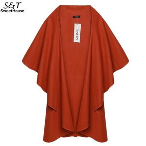 S コートラップウールショールダウンステッチ女性オープンスカーフエレガントな岬襟の女性のコートターン