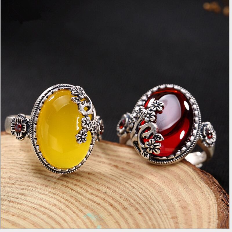 Uglyless リアル 990 ファインシルバージュエリー天然赤カルセドニー指輪女性ヴィンテージロマンチックな花リング梅の花ビジュー