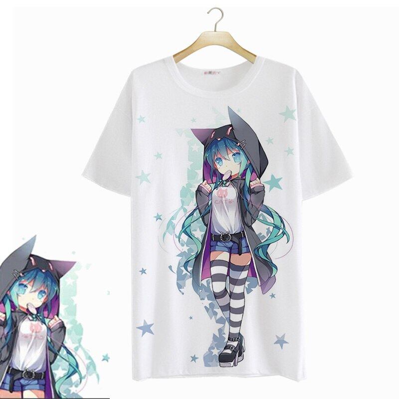 送料無料アニメ漫画初音ミクvocaloidカワイイ漫画tシャツ女性男性コスプレtシャツ半袖oネック2スタイル