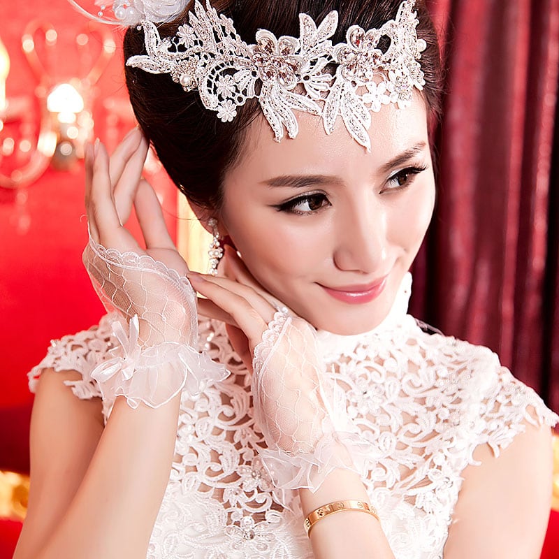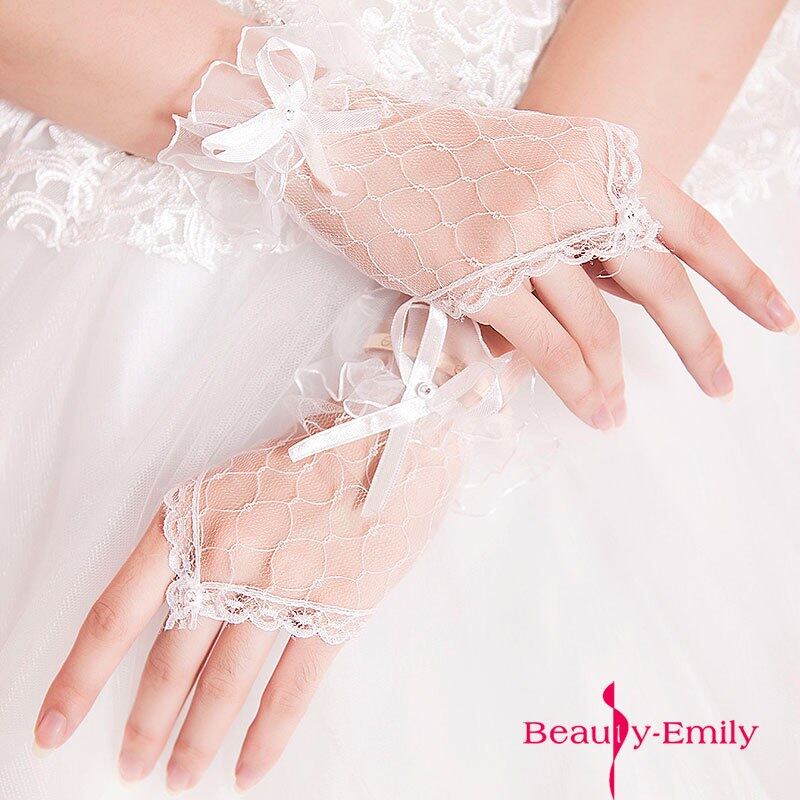 2018エレガントな弓メートル白赤黒手袋花嫁短いデザインフル薄衣手袋ウェディングドレス結婚手袋g011