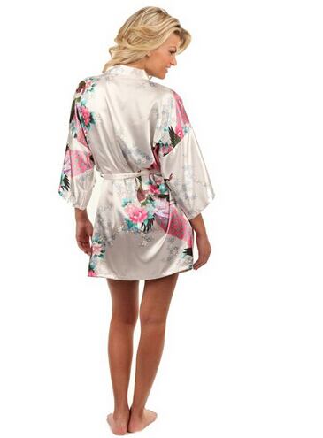 ブランドパープル女性プリント花着物ドレスガウン中国スタイルシルクサテンローブネグリジェ花sml xl xxl