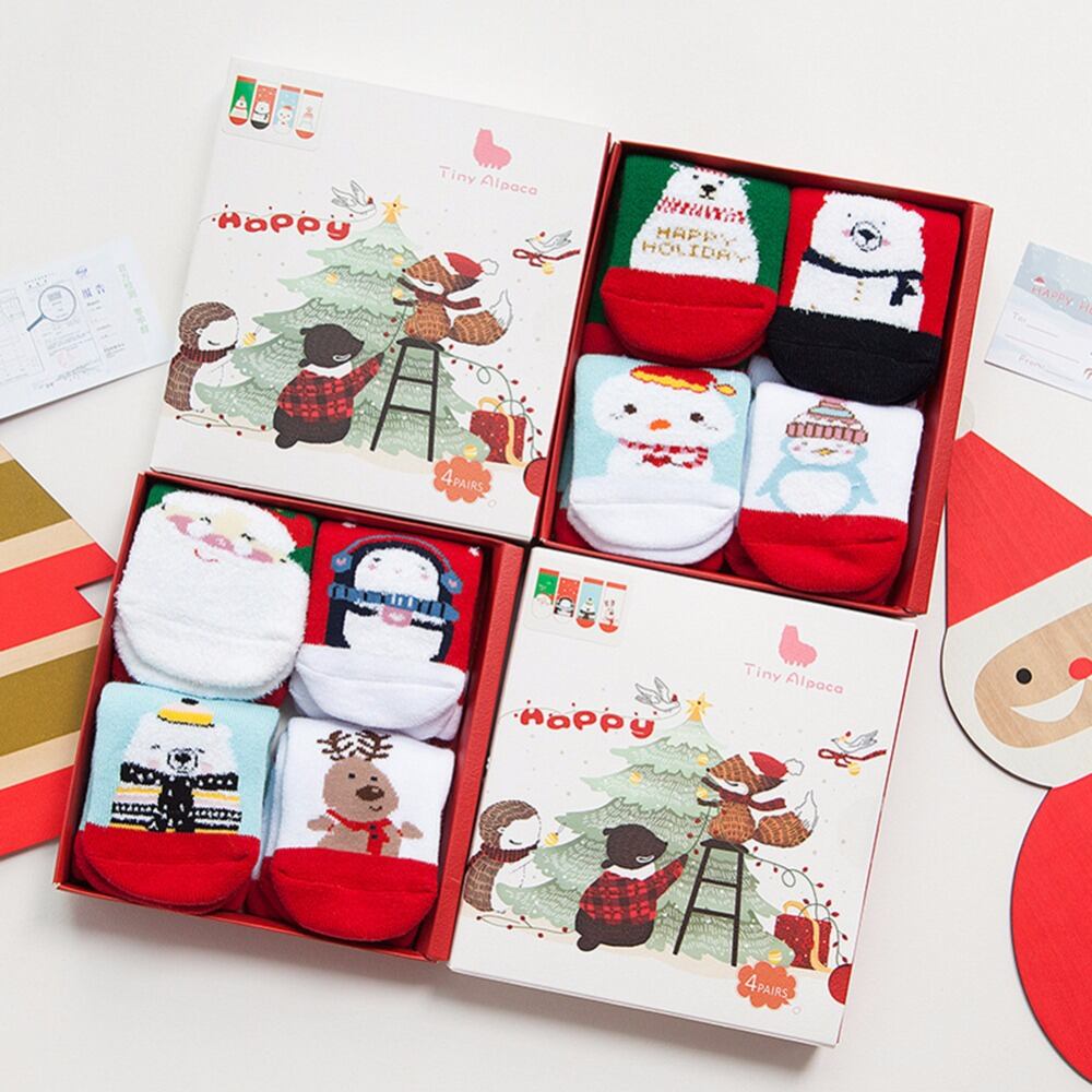 4 ペア/セット冬暖かい厚い子供ボーイズ Girs 綿の靴下ベビークリスマスギフトボックス靴下かわいい CartoonPrinting