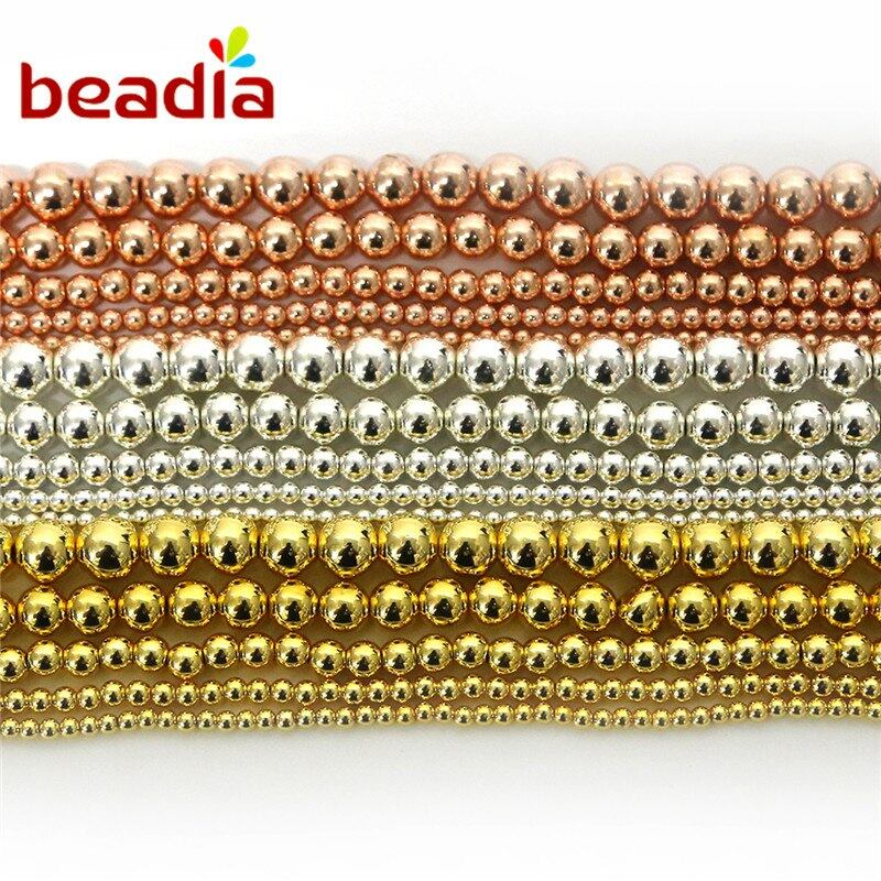 2018 新高輝度色ラウンドビーズヘマタイトゴールドシルバーローズゴールデン 40 センチの長さ Diy の意思のブレスレットネックレスジュエリー
