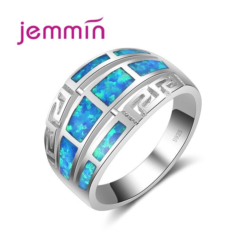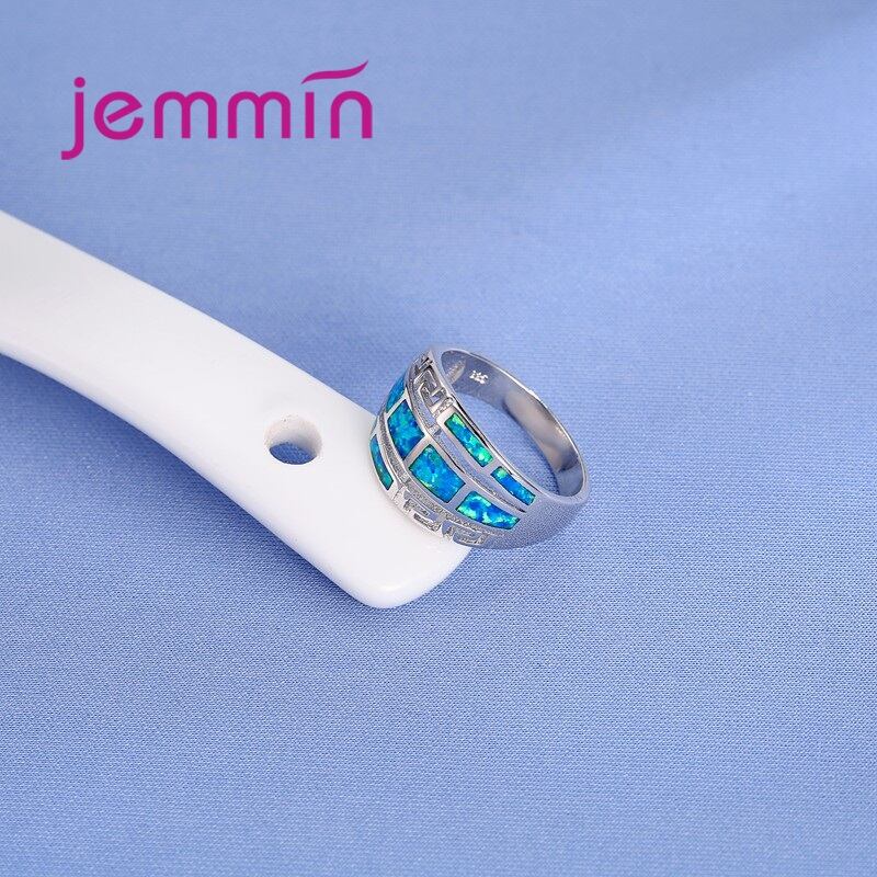 Jemmin チャームブルー火災オパールリングヴィンテージ Eleglant 925 スターリングシルバーリング女性用 & 男性ファインジュエリー