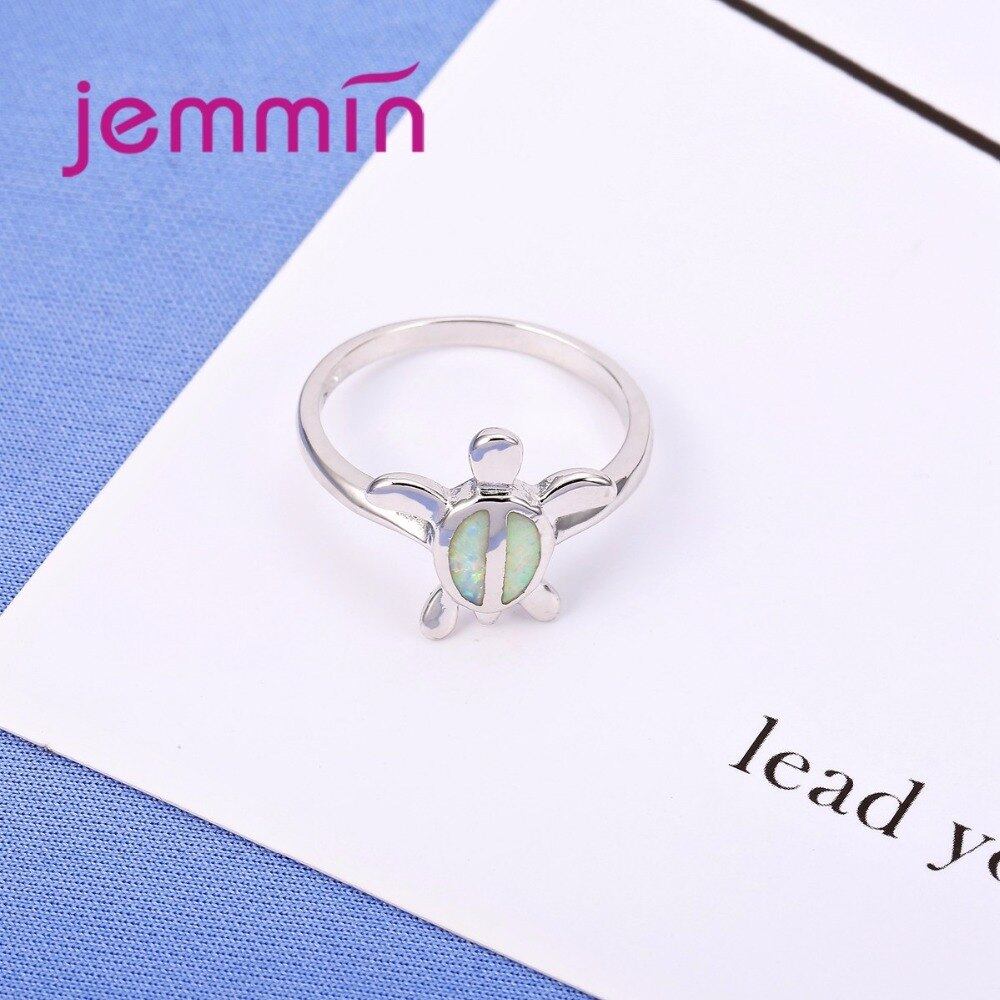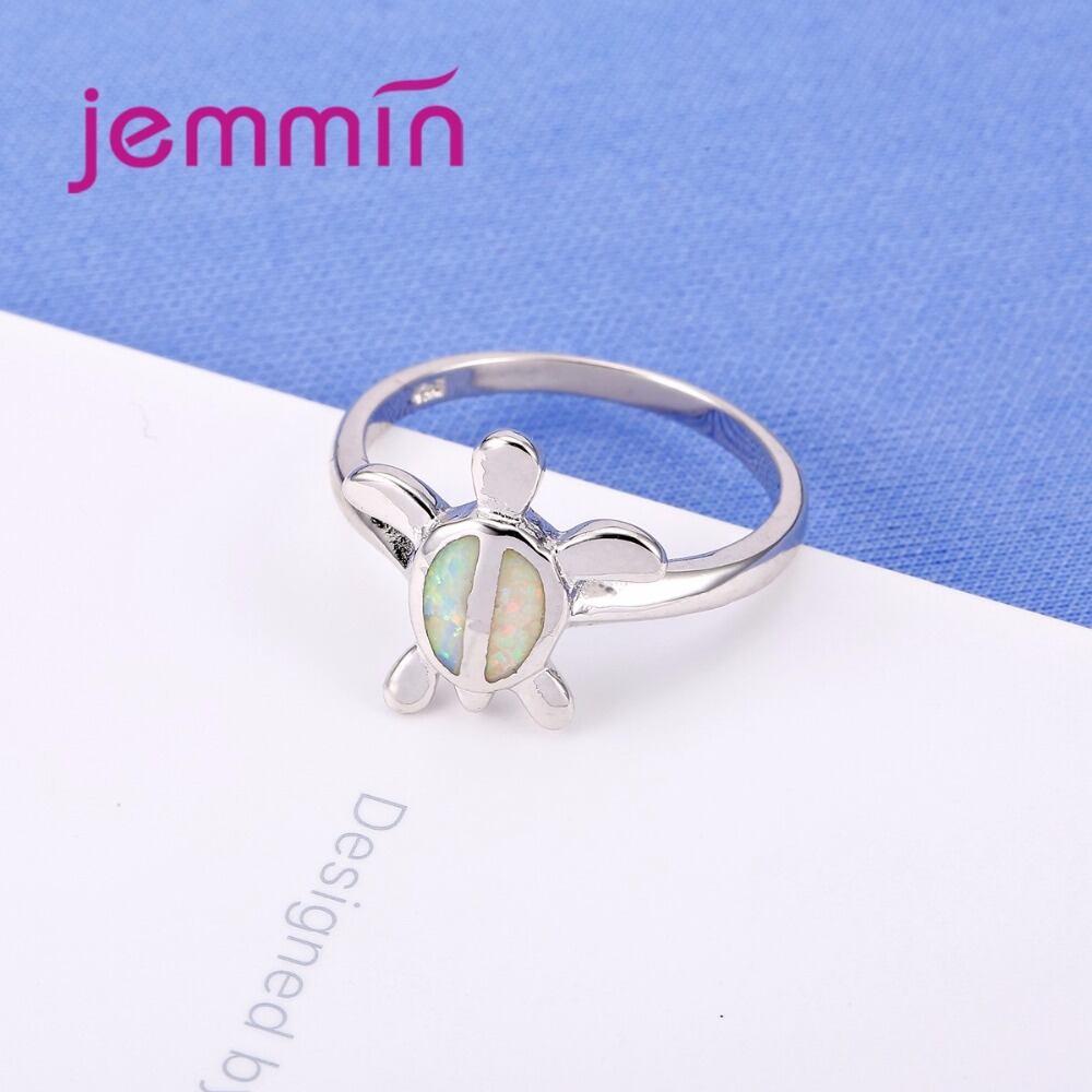 Jemmin かわいい動物のデザインカラフルなオパールリング女性のための S925 スターリングシルバーパーティーリングラウンド指リングジュエリー
