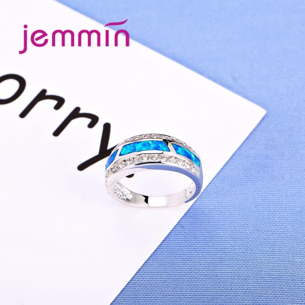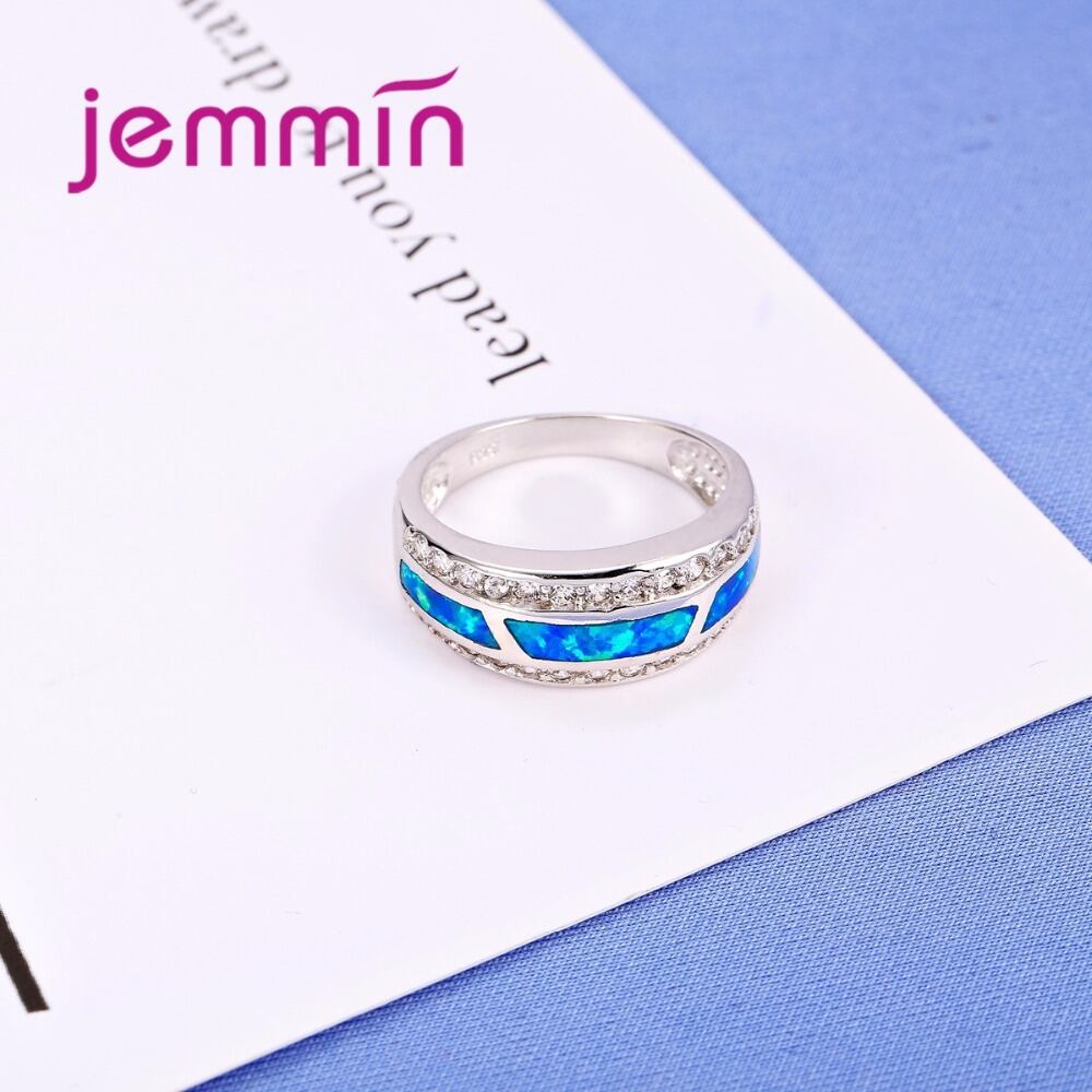 Jemmin クラシックゴージャスな 925 Stelring-シルバーリングフルクリスタルストーンファッションブルー火災オパールリング女性のための人気のジュエリー
